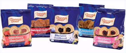 In 2009, Biscomerica introduced two flavors for Sun-Maid--Sun-Maid Oatmeal Raisin and Sun-Maid Trail Mix cookies. In bright red bags you will recognize, Sun-Maid cookies are both baked with No Trans Fats. Sun-Maid has produced the world's favorite raisins for generations. Now, you can find these plump, sun-dried raisins in two premium cookie recipes. Since 1994, Biscomerica has produced a line of premium bite sized shortbread cookies under the quality name of Knott's Berry Farm. Richly flavorful, these classic favorites are prepared using popular Knott's Berry Farm fruit fillings. Enjoy the rich and fresh taste that has been the Knott's tradition for more than 80 years. Knott's shortbread cookies are available in Raspberry, Boysenberry, Strawberry, Apricot and Blueberry in 10 oz & 20 oz gable boxes. Granny's Oven cookies possess value added pricing with upscale packaging. Granny's Oven line consists of Raspberry, Strawberry and Blueberry Shortbread cookies, plus Chocolate Chip and Oatmeal cookies. Bag sizes range from 10 oz. to 12 oz., and can be purchased through open stock cases and ready to display cut case pallets. Granny's Oven is a fresh alternative to the national brands ongoing increased cost of goods. Quality Is Our Family Tradition |